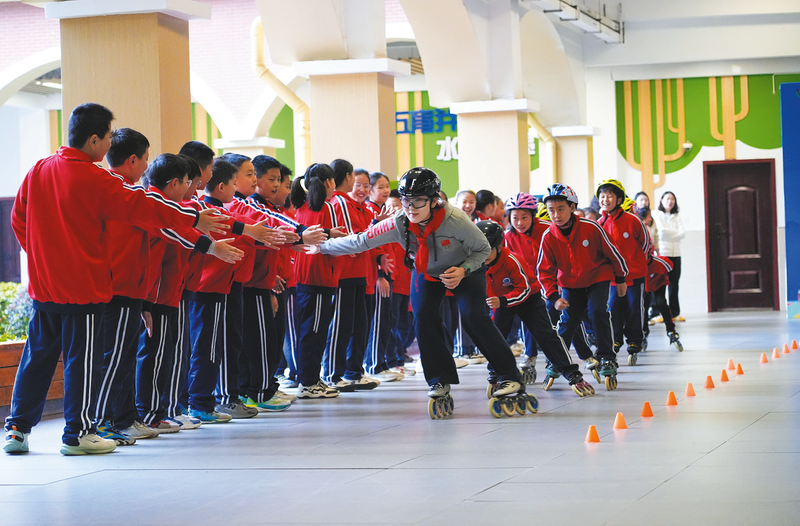 随州日报讯(全媒记者陈云)11月7日,受邀来随出席轮滑嘉年华活动的速度轮滑世界冠军、全运会金牌得主李丽莎,世界轮滑锦标赛花式绕桩冠军、全国自由式轮滑冠军陈楚尧,走进我市轮滑特色学校曾都区白云湖小学,与爱好轮滑的学生们交流互动,演示讲解轮滑训练技巧,给孩子们讲什么是“永不言弃”,在“红领巾”心中种下冠军梦。