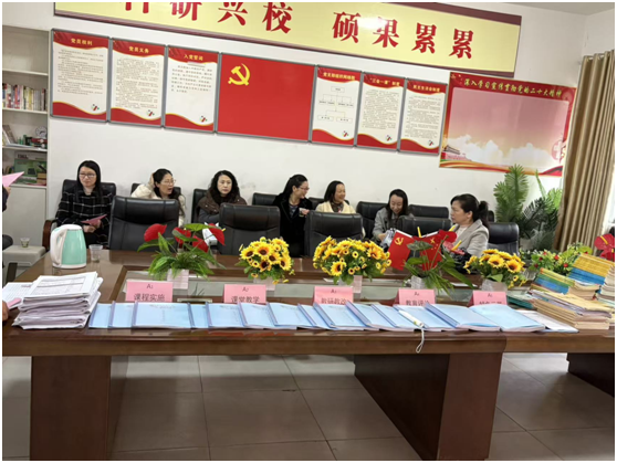 教研室领导们查看教联体建设及“两区”建设相关档案,让与会者对学校的发展历程有了更直观的了解。