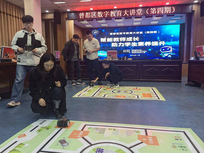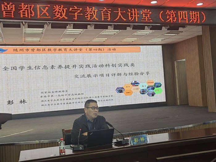 本次大讲堂是曾都区教育局深化教育数字化转型的关键一步。在总结前三期经验的基础上,实现了从广度到深度的战略升级。区教育局高度重视,电教站精心统筹,不仅提供了固定的专业场地,更力邀国际机器人奥林匹克竞赛委员会裁判、国家级金牌教练员彭林,以及湖北省中小学数字素养提升实践活动创客项目评审专家、裁判长彭先清等行业权威亲临授课,搭建起一座让一线教师与顶尖专家直接对话的桥梁。