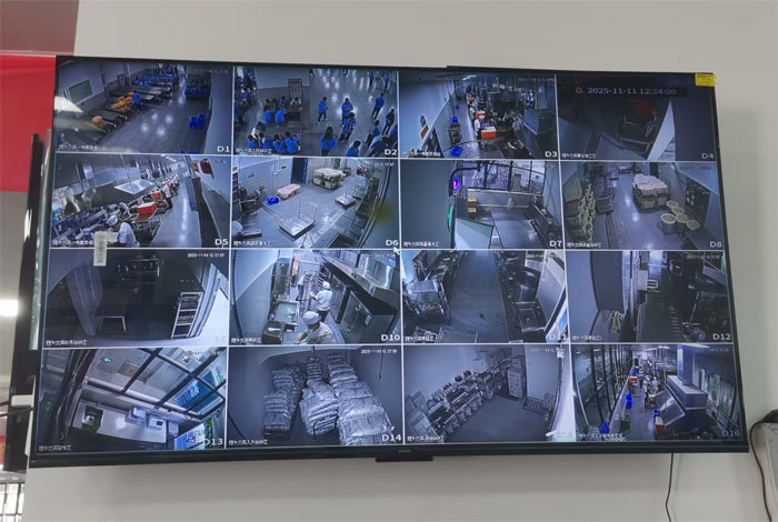食堂关键区域实现高清监控全覆盖,并与后台管理系统实时联动。从清洗消毒、切配加工,到烹饪出品与食品留样,每一环节均严格遵循系统预设流程规范操作。管理人员可通过手机端实时巡查,家长与学生也能通过食堂大屏,随时查看当日食材信息及后厨实况。智能电子秤、刷卡终端等设备的应用,进一步提升了运营效率与就餐便捷度。