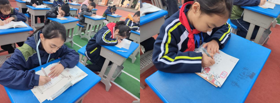 比赛现场,墨香四溢,秩序井然。小选手们个个满怀激情,用心书写每一个笔画、每一个汉字。他们正襟危坐,凝神静思,而后从容下笔。起笔、行笔、收笔间,尽显平日扎实的功底。低年级同学的字迹虽显稚嫩,却笔笔认真,充满童真趣味;高年级同学则渐趋沉稳,书写刚劲有力!一横一竖,蕴含规矩方圆;一撇一捺,彰显人格品行。孩子们在点画勾勒中,不仅展现了汉字的结构之美、仪态之美,更在实践中深刻体悟着“提笔即是练字时”的严谨态度与“心正则笔正”的为人之道。