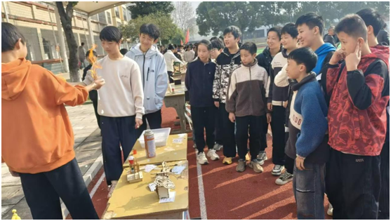 在展区内,太阳能飞机模型、太阳能水车悄然运转,物理摆锤有规律地摆动,自制饮水器极具实用性。“火焰掌”“压强与流速”等趣味小实验更是全场目光焦点,每次演示都伴随着学生们的欢呼与惊叹。色彩绚丽的科幻画描绘出未来景象,想象丰富的科技小论文展现出奇思妙想,吸引了不少学生细细欣赏。“‘火焰掌’不烫手?”“挡住阳光后水车就不动了,真的是太阳能驱动的,好神奇!”“小机器人是怎么运行的?”学生们一路参观,热情高涨,兴致勃勃地交流感受。