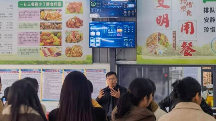 在领导带领下,家长们走进食堂,重点了解“数字食堂”建设成果。从食材采购溯源系统、智能点餐平台到后厨操作可视化监控,家长们认真聆听讲解,直观感受到学校通过数字化手段实现“来源可查、过程可控、责任可究”的膳食管理模式。