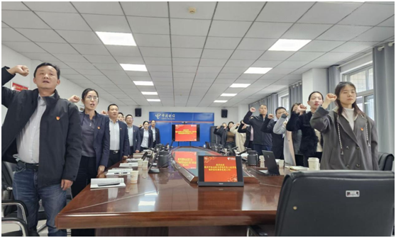 随后,联合主题党日活动在中国电信随州分公司举行。全体党员佩戴党徽,面向党旗,庄严宣誓,重温入党誓词。