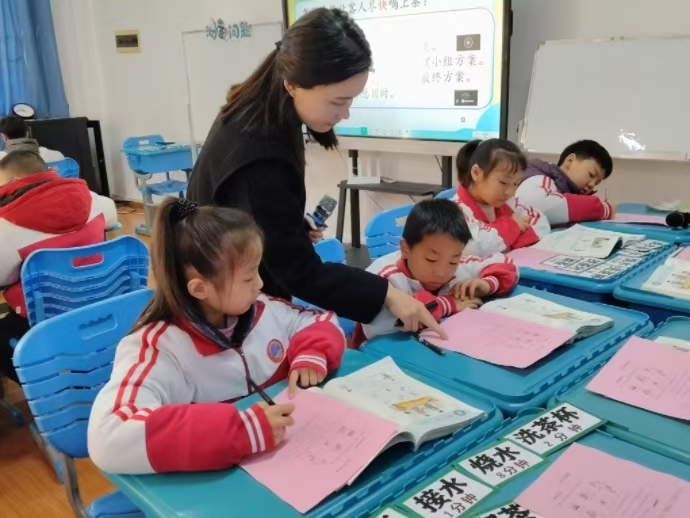 四年级课堂同样精彩。三里岗镇小学马霞老师的常态课《沏茶问题》,从日常家务场景出发,引导学生思考如何合理安排时间,培养学生的逻辑思维。草店镇中心小学李欣欣老师的示范课则在此基础上进一步优化,通过创设餐厅服务情境,让学生在解决实际问题中理解优化思想,为在场教师提供了鲜活的教学范例。四节展示课风格各异却异曲同工,均紧扣情境化教学理念,充分体现了核心素养导向下的课堂教学改革方向。