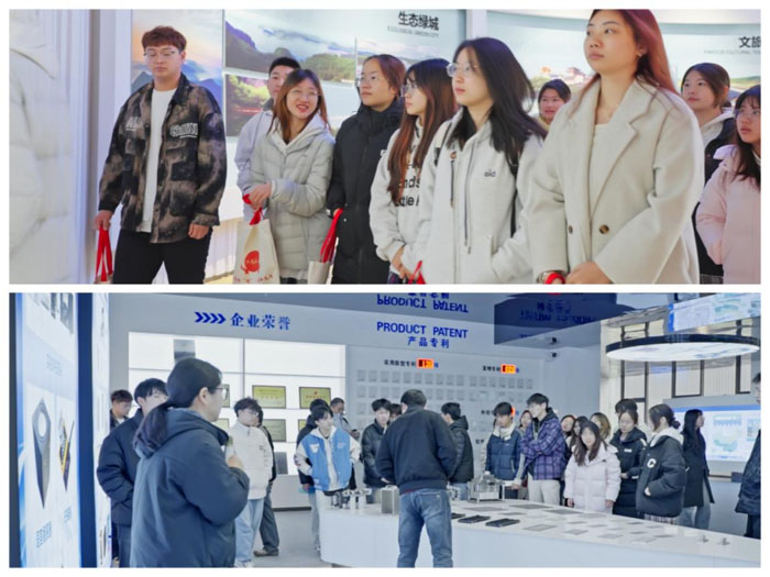 从城市规划的宏伟蓝图到人才安居的温馨实景,再到本土企业的创新动能,学子们的“家乡探索之旅”步步是惊喜、处处有收获。在随州市规划展览馆,沉浸式展厅与动态规划图相结合,搭配生动讲解,让同学们清晰读懂了随州从历史走向未来的发展脉络,对城市建设的布局与潜力有了立体认知;智臻佳苑人才公寓内,舒适的居住环境、完善的配套服务,直观展现了随州对青年人才的重视与关怀,让学子们感受到“此心安处是吾乡”的归属感。文化旅游专业学生魏雨嫣一边参观一边记录,她表示毕业后留随工作的意愿更加坚定。走进泰华电子、天一智能等本土骨干企业,生产车间的现代化氛围、研发区域的技术突破,以及与企业技术人员的面对面交流,不仅让同学们领略了本土产业的发展活力,更让相关专业学子找到了专业对接的实践方向,激发了投身本土产业的兴趣。