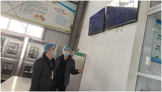 在洪山小学食堂,重点检查了食品原材料采购验收、储存保管、加工制作、餐具消毒、食品留样等关键环节,仔细查阅了食堂卫生许可证、从业人员健康证及相关台账记录。