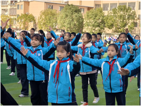广播体操比赛中,同学们着装统一、精神抖擞。伴随着轻快的旋律,抬手、踢腿、弯腰、转身,每一个动作都标准规范、整齐划一,举手投足间尽显少年朝气,诠释着阳光向上、严于律己的校园风采。