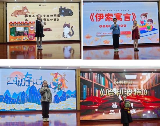 活动现场,各年级学生代表化身“好书推荐官”,通过生动的演讲和精心制作的PPT,向师生们推荐心仪的书籍。推荐书目涵盖中外经典文学、科普读物、红色故事等,包括《西游记》、《小王子》、《哈利波特》、《红楼梦》、《呼兰河传》等经典作品。同学们结合书中人物、情节及自身感悟,用真挚的语言阐述推荐理由,现场掌声不断。
