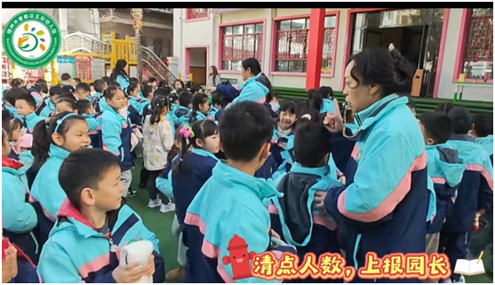 随着急促的消防警报声响起,演练正式拉开序幕。老师们迅速启动应急预案,按照预定疏散路线,沉着有序地组织幼儿用湿毛巾捂住口鼻,弯腰低姿,沿着墙壁快速撤离。过程中,孩子们听从指挥、不推不挤,在老师的带领下迅速撤离至园区指定安全地带。到达安全区域后,各班老师立即清点人数并上报,整个疏散过程高效顺畅,展现了良好的应急素养。