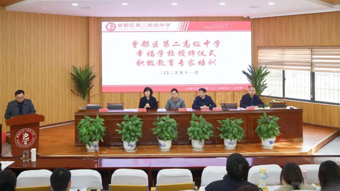 随州新闻网讯 (通讯员宋小青、何金枝)初冬生暖意,育心启新程。一场关于幸福的教育探索,一次关乎心灵的温暖对话,在十一月的校园里,悄然播下了希望的种子。近日,一场以“积极情绪”为主题的幸福学校授牌仪式暨教师培训活动在曾都二中举行。清华大学社科学院积极心理学研究中心幸福幼教实验室副主任杨瑛教授、幸福学校公益项目资深专家王阿芹老师,学校领导及全体教师齐聚一堂,共同见证这一重要时刻,开启了一场温暖的心灵之旅。
