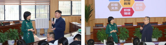 授牌仪式结束后,活动进入了实践启迪的重要环节。王阿芹老师为全体教师带来了题为《积极情绪》的专题讲座。在讲座过程中,王阿芹老师以扎实的理论基础、丰富的实践案例和生动有趣的互动方式,深入浅出地讲解了积极情绪的价值和培养方法。现场笑声阵阵,掌声不断,教师们积极参与互动,在轻松愉悦的氛围中掌握了提升幸福感的实用技巧。