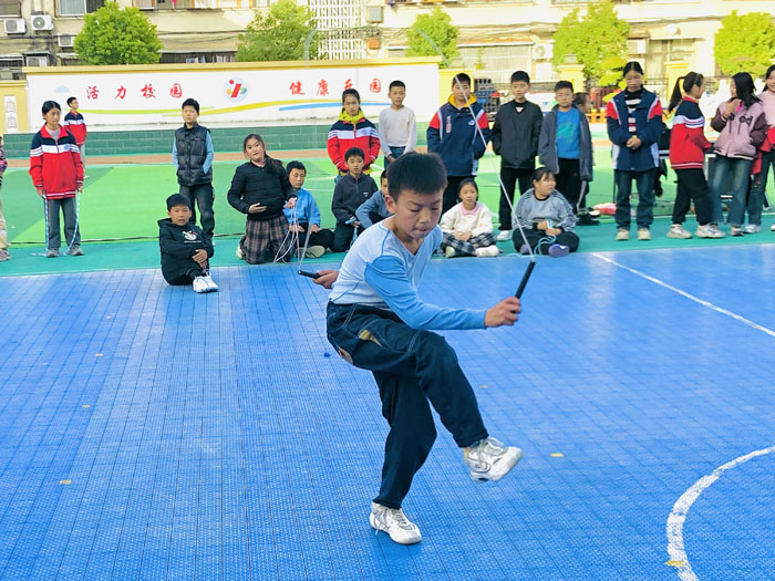 赛场上,小运动员们绳影翻飞、身姿矫健。单人项目中,他们比拼速度与技巧,不断突破自我;集体项目里,大家默契配合、步调一致,展现超强凝聚力。场外加油声此起彼伏,校园洋溢着欢乐竞技氛围。