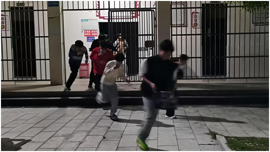 警报响起后,各宿舍迅速响应。宿舍长即刻开灯进行引导,其余学生迅速穿衣,熟练地取出毛巾,在洗漱间迅速浸湿后捂住口鼻,弯腰靠墙,依照预定路线有序列队。在整个过程中,学生们镇定自若,小跑着撤离宿舍楼,动作规范、秩序良好。当最后一名学生到达操场指定区域时,计时显示全程用时不到 2 分钟,圆满达成了演练的预期目标。