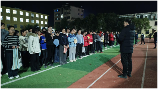 在操场集合点,各宿舍长迅速清点人数,逐一核对后向现场指挥汇报,确认全体学生均已安全撤离。随后,政教处主任王思捷对演练进行了点评,既肯定了学生们反应迅速、配合默契的表现,也指出了部分宿舍在撤离时动作稍慢、队列不够紧凑等细节问题。王思捷强调,消防安全至关重要,宿舍属于人员密集场所,防火工作绝不能有丝毫懈怠。他要求全体学生牢记演练技巧,在日常宿舍生活中杜绝私拉乱接、违规用电等危险行为。