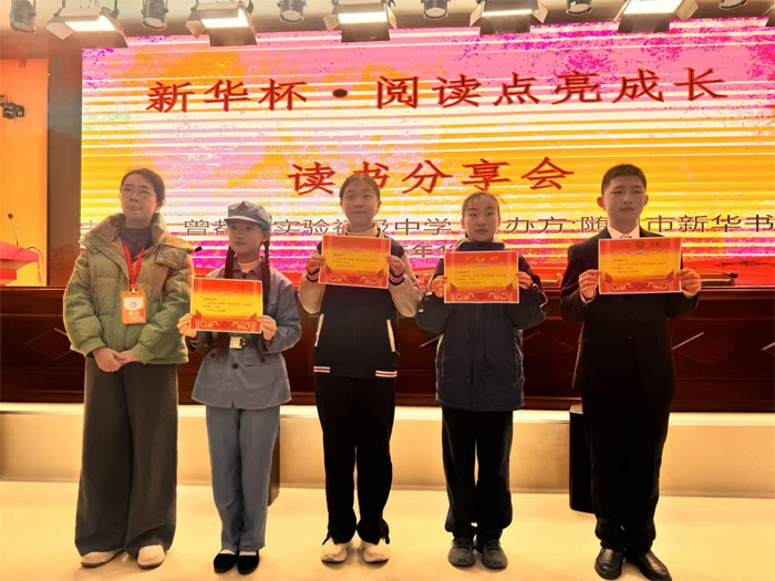 随后,随州市新华书店副经理杨罗宇发表讲话,他表示:“新华书店始终是文化传播的桥梁,此次与曾都区实验初级中学携手,正是希望以‘新华杯’为纽带,让更多少年与经典相遇。愿同学们在阅读中感悟信仰的力量,在分享中传递青春的担当,让书香弥漫校园,让信仰照亮前路。”