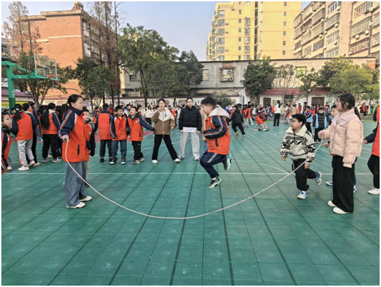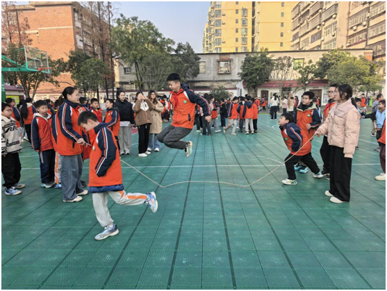 跳长绳比赛中,队员们默契配合,绳子甩动得又快又稳,跳绳的同学如同灵巧的小燕子,一个个轻盈跳跃,连贯的动作赢得了全场阵阵掌声,不少班级凭借流畅的动作和超强的协作能力创下了优异成绩。