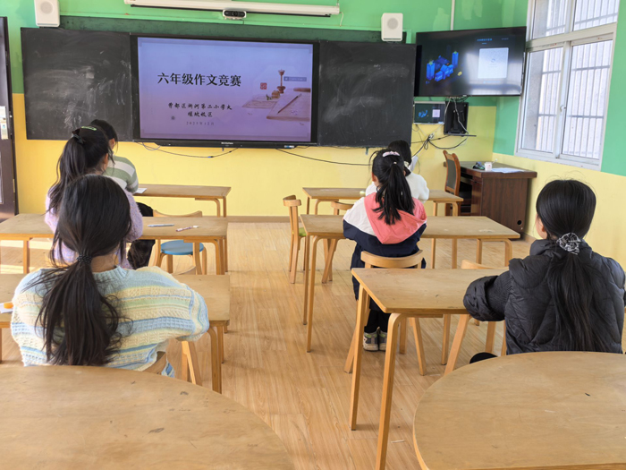 比赛在淅河第二小学教联体各分校区分设考场,各校区参赛学生均在本校参赛,实现了同时异地开赛,赛场上,学生们全神贯注审题,敛眉凝神思索,时而托腮凝思,时而握笔疾书,笔尖在稿纸上划过,沙沙声此起彼伏,宛如奏响了青春的乐章。每一篇作文都承载着他们的真情实感与独特思考,字里行间充盈着少年的朝气与担当。监考老师们则全神贯注,悉心维护考场秩序,不时轻步巡视,确保比赛公平公正。