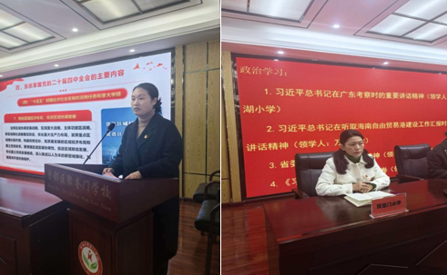 聚奎门小学党支部书记、孙秀芬带领全体党员重温入党誓词、集体诵读党章。编钟小学党支部书记陈传升、白云湖小学党支部副书记谢建鄂、万店小学政教主任吴倩分别带领党员教师认真学习了习近平总书记重要讲话精神和中国共产党第二十届中央委员会第四次全体会议公报,深刻领会习近平总书记关于教育、科技、人才工作的重要讲话精神和 “教育强国、科技强国、人才强国一体推进” 的战略部署。
