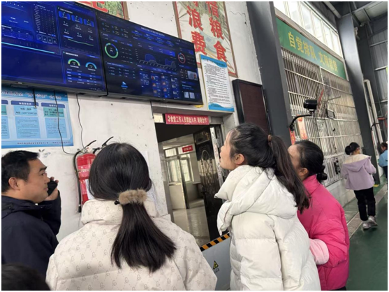 活动伊始,校方向家长介绍了“数字食堂”的智慧管理系统。通过线上采购平台、食材溯源系统和3C明厨亮灶系统监控设备,食堂实现了从食材入库到烹饪出餐的全流程数字化管控。家长代表们通过电子屏实时查看后厨操作、食品留样记录和营养分析数据,对“明厨亮灶”工程有了直观感受。“食材来源可追溯,操作过程透明化,这样的管理让我们很放心。”一位家长在参观后表示。
