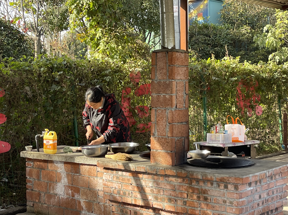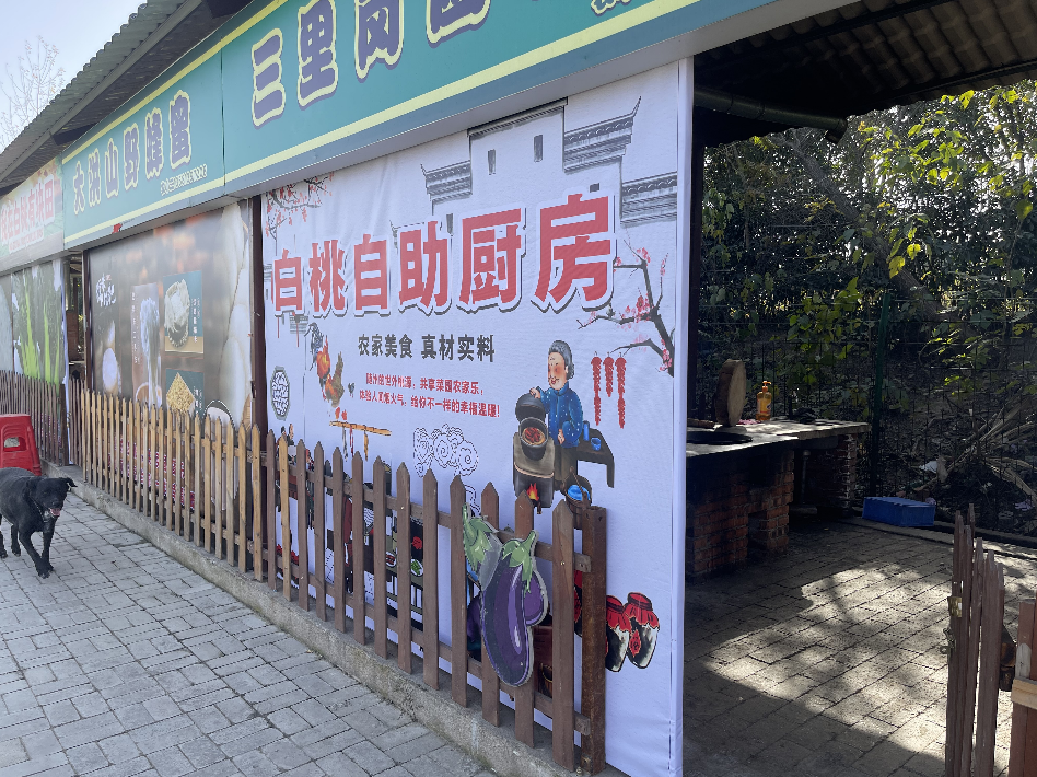 白桃村共享菜园的自助区可供大家租赁使用,园区的自助厨房内,厨具、餐具、调料一应俱全,租户张女士正忙着加工刚摘的白菜和紫菜苔:“自己种的蔬菜现摘现炒,味道就是不一样。”