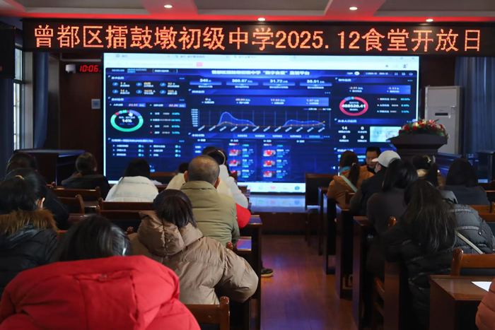 随州新闻网讯 (通讯员徐世喜、杜洁)为筑牢校园食品安全防线,凝聚家校育人合力,近日,擂鼓墩初级中学举行了食堂开放日活动。家长代表们走进校园,与学校共商“校园餐”大计,见证孩子们舌尖上的安全与营养。