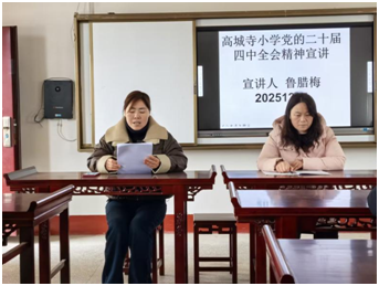 随州新闻网讯 (通讯员鲁腊梅)为深入学习贯彻党的二十届四中全会精神,切实推动全会精神在校园落地生根、深入人心,高城寺小学近期精心组织、系统谋划,开展了一系列形式多样、覆盖全面的学习宣讲活动,在全校范围内持续掀起学习宣传贯彻的热潮。