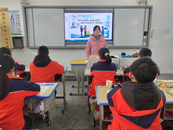升旗仪式结束后,各班迅速开展应对雨雪天气的主题班会。班主任结合案例细化防护细节,组织学生交流出行避险技巧,并强调极端天气下需听从学校统一安排,进一步强化了学生的安全意识。