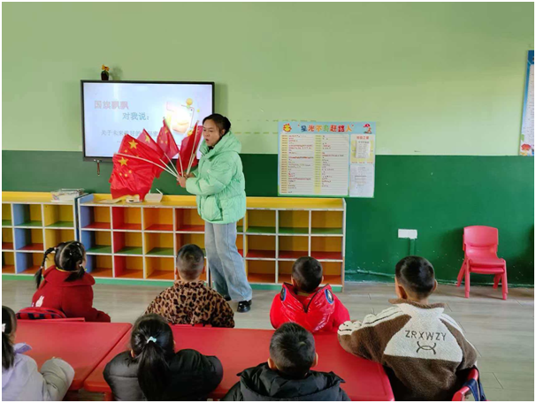 随州新闻网讯(通讯员褚凌扬)“红旗飘呀飘,要告诉我们什么小秘密呀?”近日,万福店中心幼儿园内童趣盎然,一场别开生面的党的二十届四中全会精神启蒙活动正在开展,让抽象的会议精神化作幼儿看得见、摸得着的生活场景。