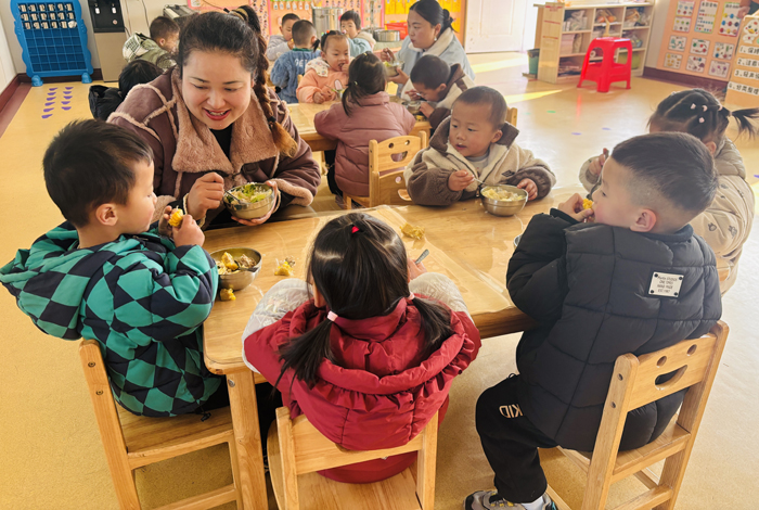 现场查看后,家长们进入班级参与亲子陪餐,从餐食营养组合、口味适配、温度把控及分量精准度等维度体验评估。家长们直观感受到膳食制作的精细化管理水平,认可餐食安全与适口性,亲子互动温馨有序。
