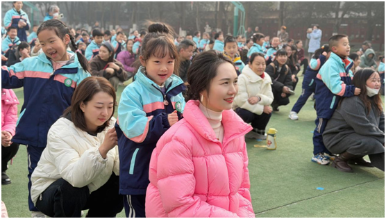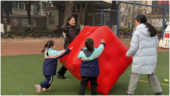 精彩的非洲鼓表演点燃了现场氛围。孩子们随着节奏整齐敲击,动感的鼓点、专注的神情展现出蓬勃朝气,台下家长们的掌声与欢呼声此起彼伏,将现场热度推向高潮。表演结束后,亲子趣味竞赛正式开赛,推块奋进、飞驰时光、强国启航等八大项目依次登场。赛场上,家长与孩子默契配合,或携手冲刺、或协力闯关,小小的身影在奔跑中绽放活力,亲子间的加油鼓劲声、冲破终点的欢呼声交织在一起,让整个校园变成了欢乐的海洋。