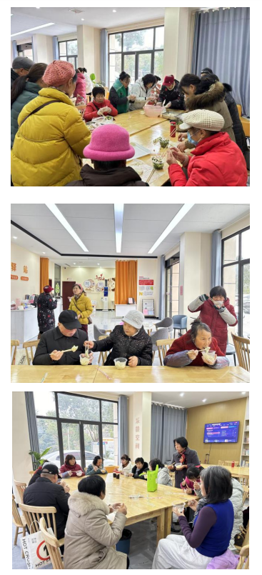 紧接着,包饺子活动开始啦,老人们围坐在一起,手法娴熟地捻皮、填馅、捏边,不一会儿,形态各异的饺子便摆满了餐盘。大家一边包饺子,一边交流着不同地域的包饺子技巧与家庭故事,场面温馨融洽,欢声笑语不断。热气腾腾的饺子出锅后,长者们共同品尝这份亲手制作的冬至美味,畅谈生活趣事,回忆过往岁月。暖暖饺子香,浓浓邻里情,邻里中心洋溢着一片温暖团聚的氛围。餐后,大家自觉践行“光盘”行动,收拾整理桌面,共同打扫卫生。府河琴韵片区居民王伯伯欣慰地说:“社区常提醒‘光盘’光荣,这么香的饺子,吃得一点不剩,才不负这份心意和粮食。”朴素的话语,映照出节约理念已深入居民心中,文明餐桌的新风也悄然吹拂在这个温暖的冬至。