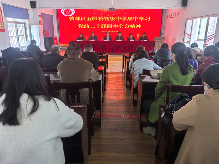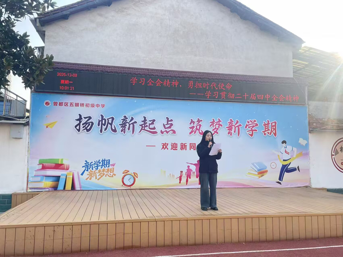 随州新闻网讯 (通讯员毛三鑫)为深入学习宣传贯彻党的二十届四中全会精神,切实把全校师生的思想和行动统一到全会精神上来,把智慧和力量凝聚到实现全会确定的各项目标任务上来,五眼桥初级中学近期精心组织开展了一系列内容丰富、形式多样的学习宣传活动,在校园内迅速掀起学习热潮,为学校高质量发展注入强劲思想动力。