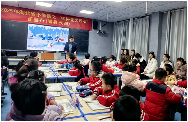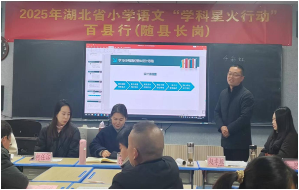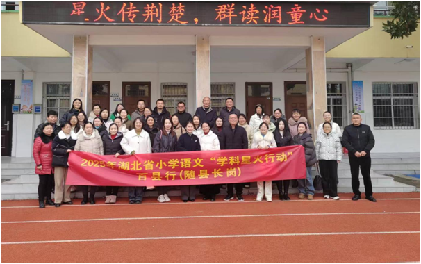 随州新闻网讯 (通讯员吕立升)为深化小学语文学习任务群教学实践,助力乡村教师专业发展,2025年12月24日,湖北省小学语文“学科星火行动”张瑞导师团队走进随县长岗镇中心小学,开展进校访学暨“群读类学”研究成果“百县行”活动,随县部分语文骨干教师共同参与研讨。