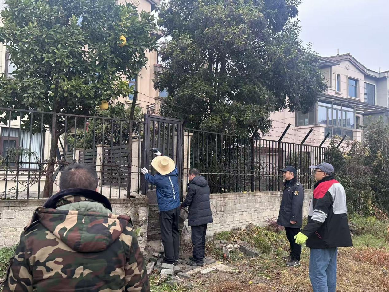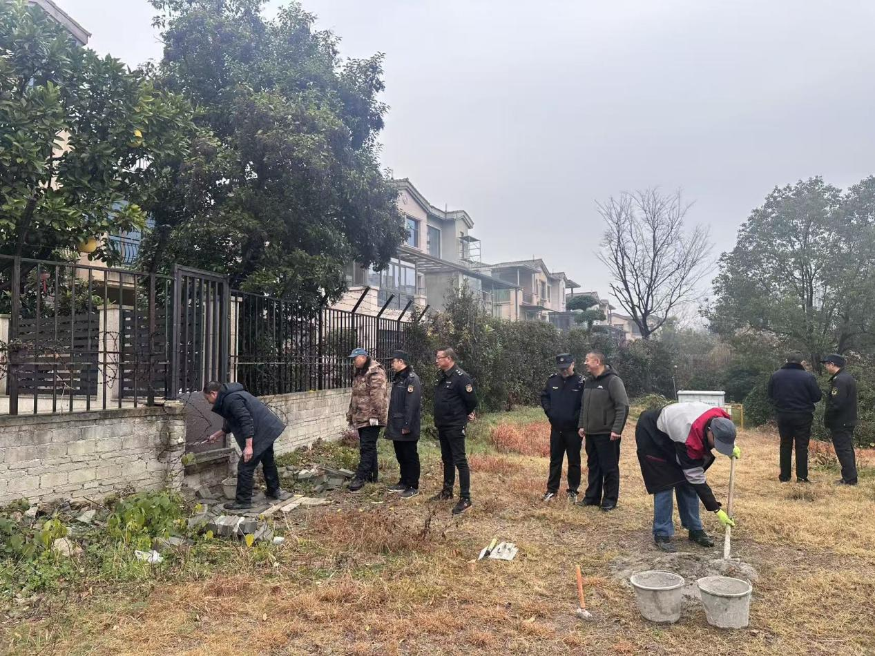 考虑到部分业主缺乏专业修复能力,自行整改存在困难,风光社区主动靠前服务,对接专业施工团队跟进修复。行动当日,专班人员与施工队密切配合,对21处破损围栏开展标准化复原作业,采用水泥抹平的方式,确保围墙安全牢固。
