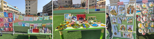 操场东侧,一条别开生面的手作艺术长廊吸引了众多目光。这里集中陈列了各年级学生精心创作的美工作品:树叶贴画区内,寻常落叶被巧妙构思,拼贴成充满童趣的图画;印染作品区,素雅棉布上蓝白相间的纹样韵味盎然;圆圆的纸盘化作画布,绘出斑斓的想象;精巧的微景观里,苔藓、细石构筑出宁静的小世界。这片展示区不仅是作品的陈列,更是孩子们观察生活、动手创造、表达内心美好的真实窗口,在一折一染、一拼一贴中,展现着美的启蒙与匠心的萌芽。