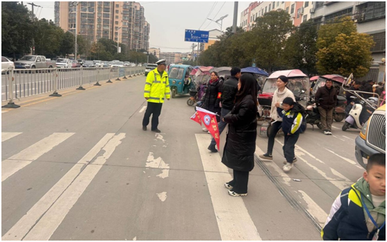 秩序维护筑牢安全防线。在上放学高峰期,值日教师与安保人员联合值守校门口,耐心疏导交通、劝阻车辆乱停乱放及违规摆摊设点行为,全力保障校门口道路畅通,为师生出行筑牢安全屏障。
