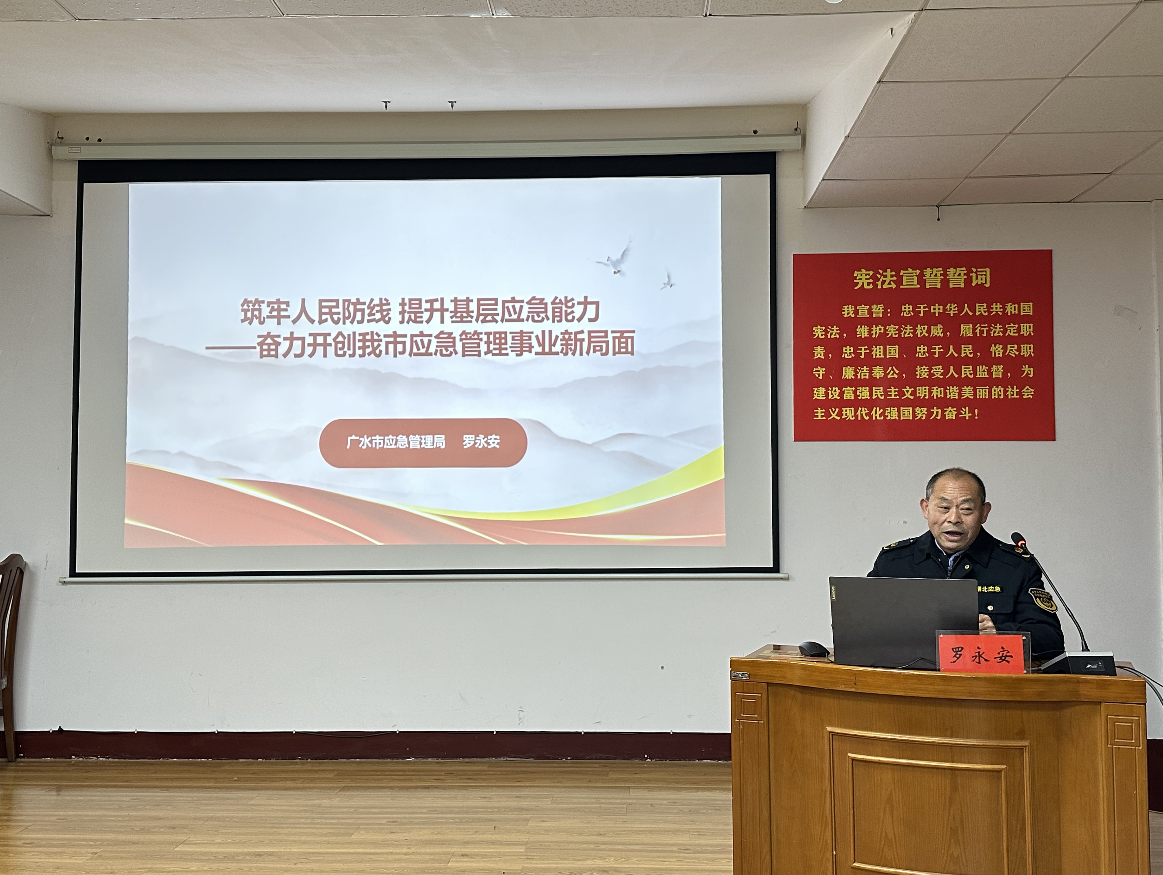 此次分享以《筑牢人民防线 提升基层应急能力——奋力开创我市应急管理事业新局面》为题,紧密结合当前应急管理工作面临的新形势、新任务、新挑战,系统阐述了提升基层应急能力的时代背景与现实紧迫性,提升基层应急能力的重大战略意义与深远影响,并结合广水市实践,介绍广水市在推动基层应急能力建设方面的工作进展与思考。