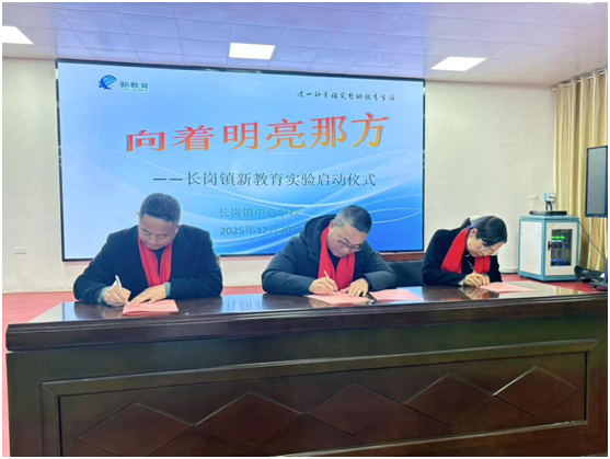 随后,中心学校领导任金秀庄重宣读了推进新教育实践的倡议书,向全镇教育工作者发出了投身实践的明确号召。紧接着,在全体与会人员的见证下,举行了简朴而庄重的协议签订仪式。中心学校党总支书记梁仁力、中心学校常务副校长任勇兵、长岗镇中心小学校长汪清华共同签署了新教育实验责任书,标志着新教育实验在长岗镇从理念倡导进入了镇校协同、责任共担的实质性推进阶段。