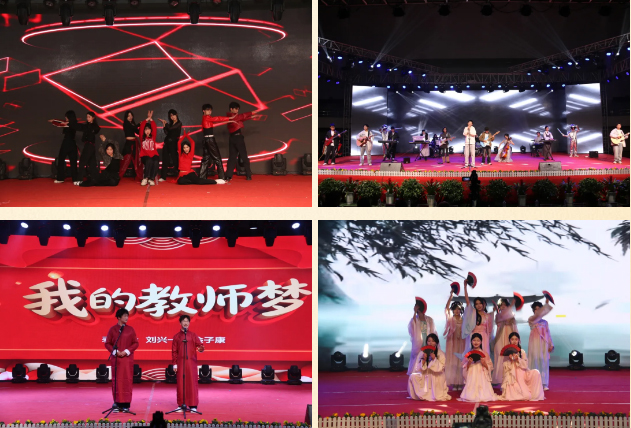 随后,一场精彩绝伦的文艺盛宴在热烈的掌声中拉开帷幕。整场晚会节目形式多样,内涵丰富,充分展现了学校素质教育的丰硕成果和师生昂扬向上的精神风貌。活力四射的开场舞《光亮》瞬间点燃全场热情;古典舞《青花瓷》《画中游》《洛春赋》衣袂飘飘,演绎出中华传统文化的典雅韵味;乐队表演《来自宇宙的馈赠》《真的爱你》则用激昂的旋律奏响了青春的摇滚与深情;小品《最佳损友颁奖典礼》《直播间的苞米地》贴近生活,笑点与思考并存;舞台剧《老师好》深情讴歌师恩,感人至深;特别策划的《舞台上的思政课》将朗诵与舞蹈艺术融合,创新了思想政治教育的形式,令人印象深刻。此外,青年教师带来的节目《我的青春我做主》以及教师代表的演出《我们的中国梦》,充分展示了教师队伍的才华与风采,彰显了全员育人、师生同乐的和谐氛围。最终,晚会在深情恢弘的合唱《珊瑚颂》及洋溢着新年喜悦的歌舞《春风十里报新年》中圆满落下帷幕。