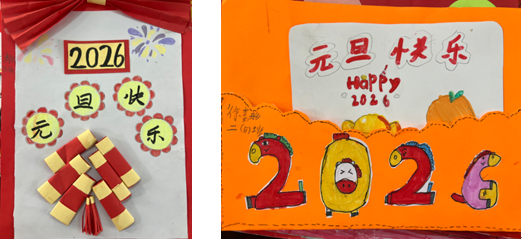 “爆竹声中一岁除,春风送暖入屠苏。”新年伊始,同学们怀着对亲朋好友的祝福,纷纷拿起彩笔、剪刀、卡纸,开启了一场别开生面的新年贺卡制作之旅。同学们用稚嫩的小手将五彩的卡纸剪成心形、圆形等形状,再用彩笔在上面画上可爱的卡通形象,写上“新年快乐”“万事如意”等祝福语,虽然笔触稍显生涩,但每一张贺卡都承载着他们满满的诚意和对新年的憧憬。