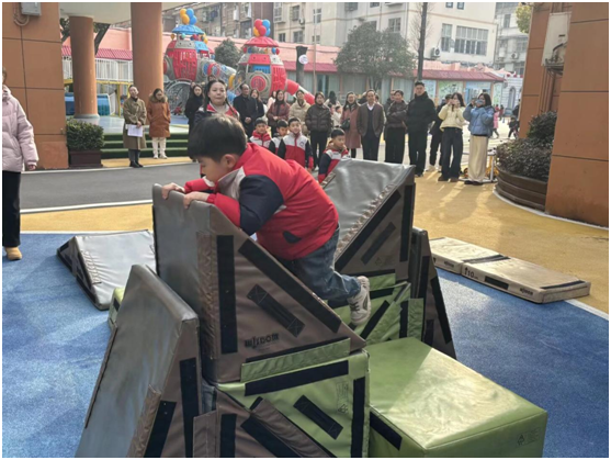 在功能室和户外活动区域,家长们饶有兴致地参观了图书、建构、科学等功能室,并观摩了孩子们进行篮球、跳绳、跑酷、大雪花片拼接、轮滑车等丰富多彩的户外活动。