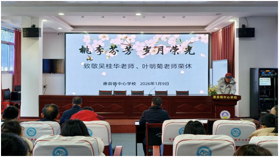 随州新闻网讯 (通讯员胡群)1月9日下午,随县唐县镇中心学校为两位退休教师隆重举行荣休仪式。全体教职工齐聚一堂,共同为这两位桃李满天下的教育工作者送别。