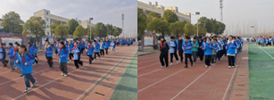 随着激昂的音乐响起,同学们迈着铿锵有力、整齐划一的步伐,精神抖擞地奔跑在跑道上,充分展现出新时代少年朝气蓬勃、奋发向上的精神风貌。过程中,各班队列整齐、步调一致,展现出极强的班级凝聚力与协作意识。