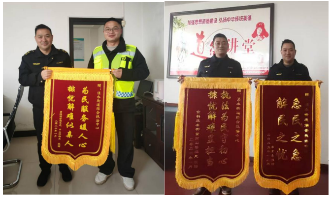 (通讯员 吴雪萌)近日,涢水街道综合执法中心陆续收到三面锦旗,分别由碧桂园金都华府与半山悦物业联合赠予、金科服务御景南山管理处赠予,以及云山竹语小区居民李女士赠予。每一面锦旗的背后,都承载着群众对执法中心工作的认可,更记录着一段段执法中心与居民、物业携手解决实际问题的暖心故事。