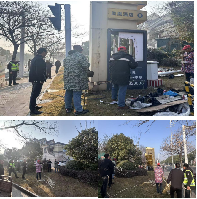 为确保拆除工作安全高效,执法中心聘请专业施工人员负责。拆除当日,执法队员全程在现场维持秩序,疏导行人和车辆,并协助施工人员搬运、清理拆除物。执法人员与施工团队密切配合,操作规范、步骤清晰,顺利完成拆除工作。