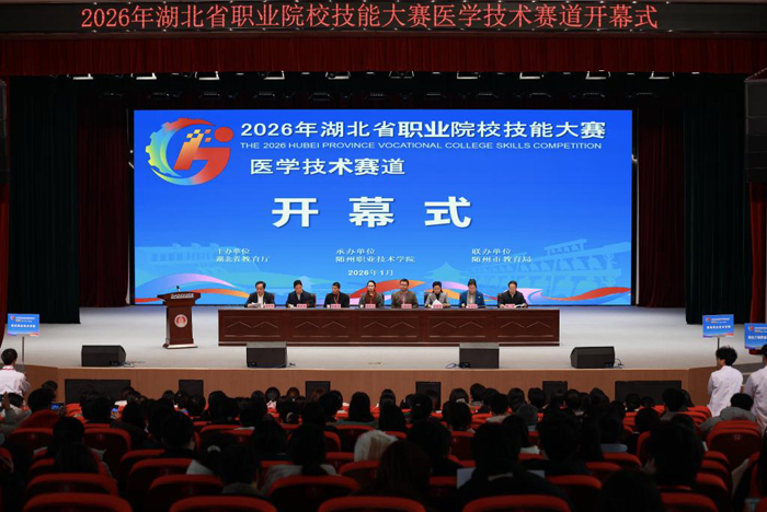 随州新闻网讯 (通讯员肖新俊、杨莉、朱春丽、王强)1月14日,2026年湖北省职业院校技能大赛医学技术赛道在随州职业技术学院正式开幕。随州市人大常委会副主任郑晓峰、随州职业技术学院校长曾庆东、随州市教育局局长王桂兰、随州市卫生和健康委员会副主任郝珩等出席大会。随州职业技术学院党委委员、副校长梁学军主持会议。