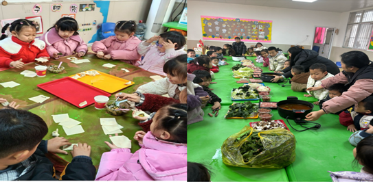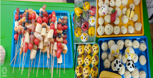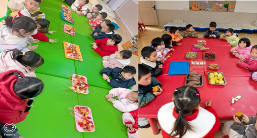 活动前期,幼儿园老师们精心策划、周密布置。各班教室摇身一变,成为特色鲜明的美食小铺,有清甜爽口的冰糖葫芦、造型可爱的卡通包、皮薄馅儿大的饺子,热气腾腾的火锅,还有充满地方风味的特色小吃。家长志愿者们也早早来到幼儿园,化身“美食大厨”,和老师们一起忙碌,为孩子们准备新鲜食材。