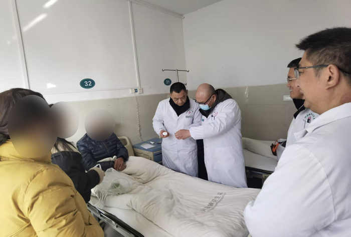 “在家门口就能看上大医院的专家,真是太方便了!”专家门诊室内,前来就诊的群众笑意盈盈。曾都区人民医院神经内科主任李洪斌如约而至,他耐心接诊每一位患者,细致问诊、精准查体,用通俗易懂的语言解析病情,为群众量身定制个性化诊疗方案。坐诊甫一结束,李主任便马不停蹄赶往内科住院部开展查房指导。针对两例脑出血患者,他结合病历资料与检查报告,深入分析病情发展趋势,手把手指导基层医护人员优化治疗与康复方案,一举一动间,尽显对患者健康的深切关怀。