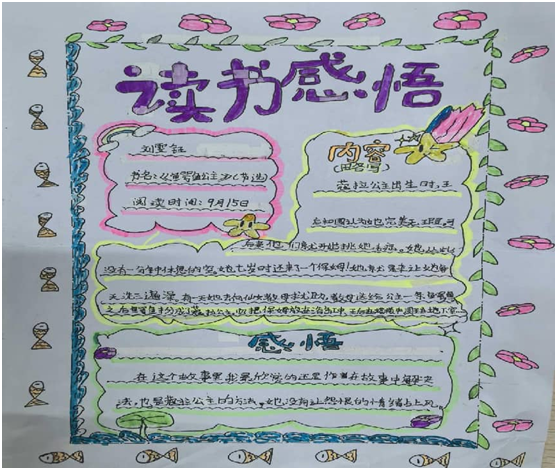高年级主打"思辨提升",围绕《童年》《列那狐的故事》等名著,开展主题探究、好书推荐、感悟分享等深度活动。读书分享会上,同学们不仅能完整复述故事脉络,还能结合现实生活探讨"诚信与智慧""责任与成长"等深刻话题;在“好书推荐海报设计”活动中,大家精心撰写推荐理由、绘制创意海报,用生动的表达向同学推荐心仪书籍,让思想在交流中碰撞升华。不少学生还主动担任“阅读小导师”,带领低年级同学读书,在分享中深化自身理解。